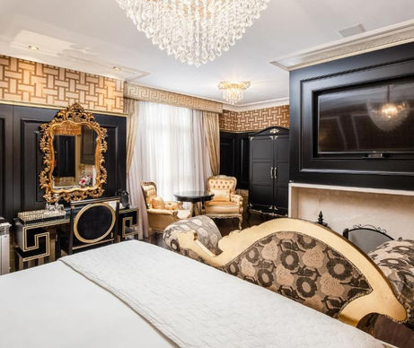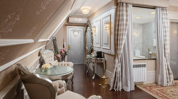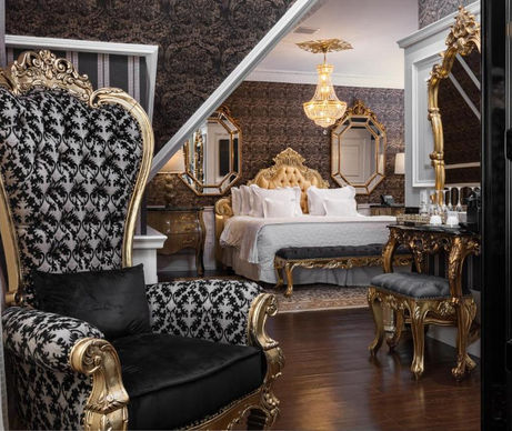 São 34 suítes com altos padrões de conforto e design requintado. Cada suíte inclui ar-condicionado, Smart TV 4K com Netflix, cafeteira Nespresso e amenidades da L’Occitane. Algumas unidades possuem lareira, banheira de hidromassagem e piso aquecido. A roupa de cama da grife Trussardi/Trousseau e detalhes inspirados no Império Francês completam a experiência de luxo.
