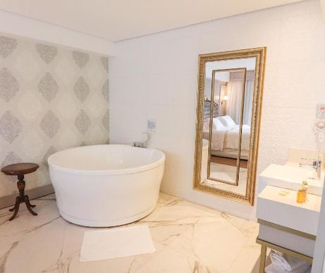 As suítes são espaçosas e versáteis, idealizadas para famílias ou casais, equipadas com camas queen ou twin, Smart TV 43 ”, ar-condicionado, calefação, cofre e Wi‑Fi gratuito. Quartos superiores e master oferecem sala de estar integrada, hidromassagem e bancada de trabalho — combinando elegância e funcionalidade