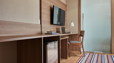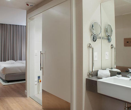As acomodações modernas dispõem de ar‑condicionado, calefação, Smart TV, minibar e banheiro completo com amenities premium.
