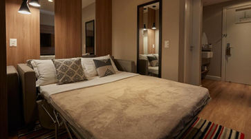 Algumas suítes superiores oferecem varanda, vista panorâmica e layout familiar. Todos os quartos garantem conforto acolhedor e privacidade, com isolamento acústico e ambientação contemporânea .