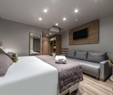 As unidades possuem decoração clean e funcional, ideais para relaxar após um dia de passeios em Gramado e Canela.