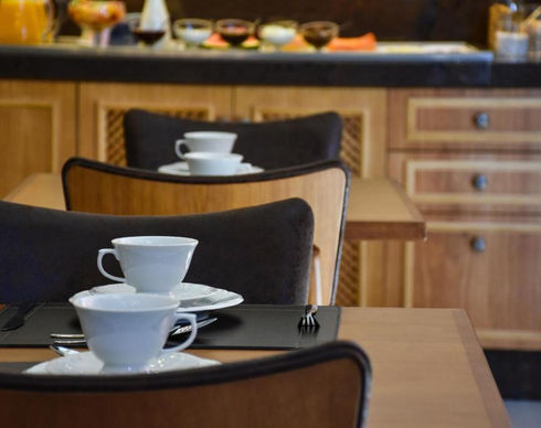 O hotel oferece buffet de café da manhã diariamente, com grande variedade de pães, bolos, frios, frutas e opções quentes. Nas tardes frias, os hóspedes desfrutam de um delicioso chá da tarde com bolos e sanduíches, servido em ambiente acolhedor. Um lounge com bebidas e snacks fica disponível a qualquer hora .