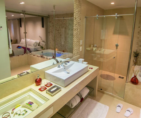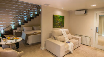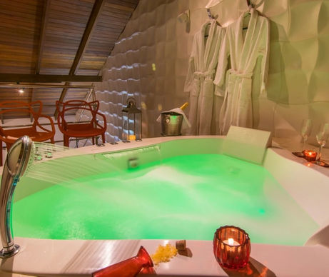 As suítes variam entre categorias Charmant, Plaisir e Mignon, todas equipadas com ar-condicionado, calefação, TV Smart, Wi-Fi de alta velocidade e frigobar. Algumas acomodam até 80 m² com sacada, lareira e banheira de hidromassagem — ideais para quem busca momentos luxuosos em ambiente acolhedor. Todas contam com piso aquecido, amenities de cortesia, roupões e iluminação pensada para criar atmosfera relaxante.